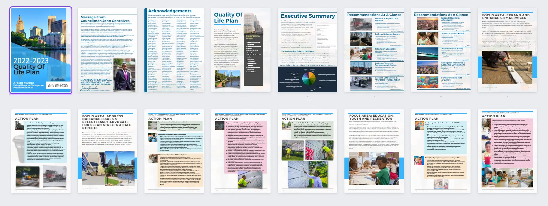 "Providence has the potential to continue to develop as a world-class city now and for future generations," Councilman Goncalves said. "Today, we are laying out a preliminary round of concrete, specific, and substantive ideas to ensure we can move Providence forward. The best, bold, and ambitious ideas come from the people, and I truly believe the people closest to the problems are closest to the solutions. I want to thank the more than 500 Providence residents who have contributed to this report so far."